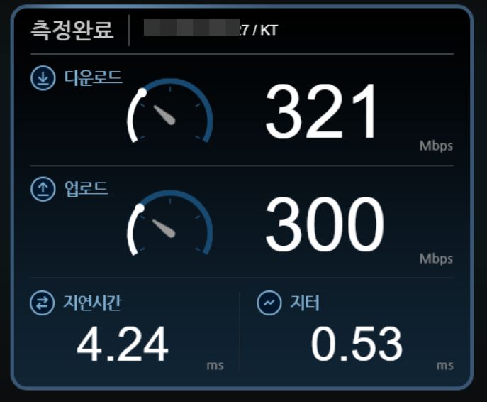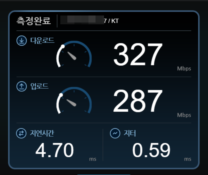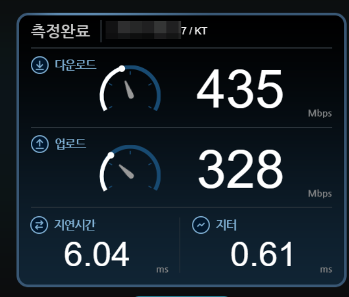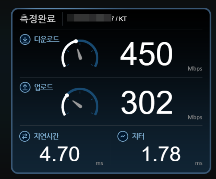집에서 사용하는 공유기를 이용하여 속도를 측정해보았습니다.