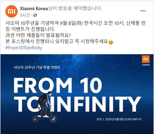 샤오미 코리아 페이스북 페이지 - www.facebook.com/XiaomiKorea/posts/2881965835370797