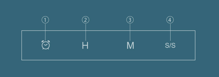 또한 제품의 윗면에는 버튼이 있어 타이머의 시간을 설정할 수 있을 뿐 아니라 알람 기능을 켜고 끌 수도 있다. 알람 버튼은 길게 눌러 ON/OFF를 할 수 있으며 H는 시간, M은 분을 조절할 수 있다. S/S버튼으로는 타이머나 포모도로 기능을 사용한다.