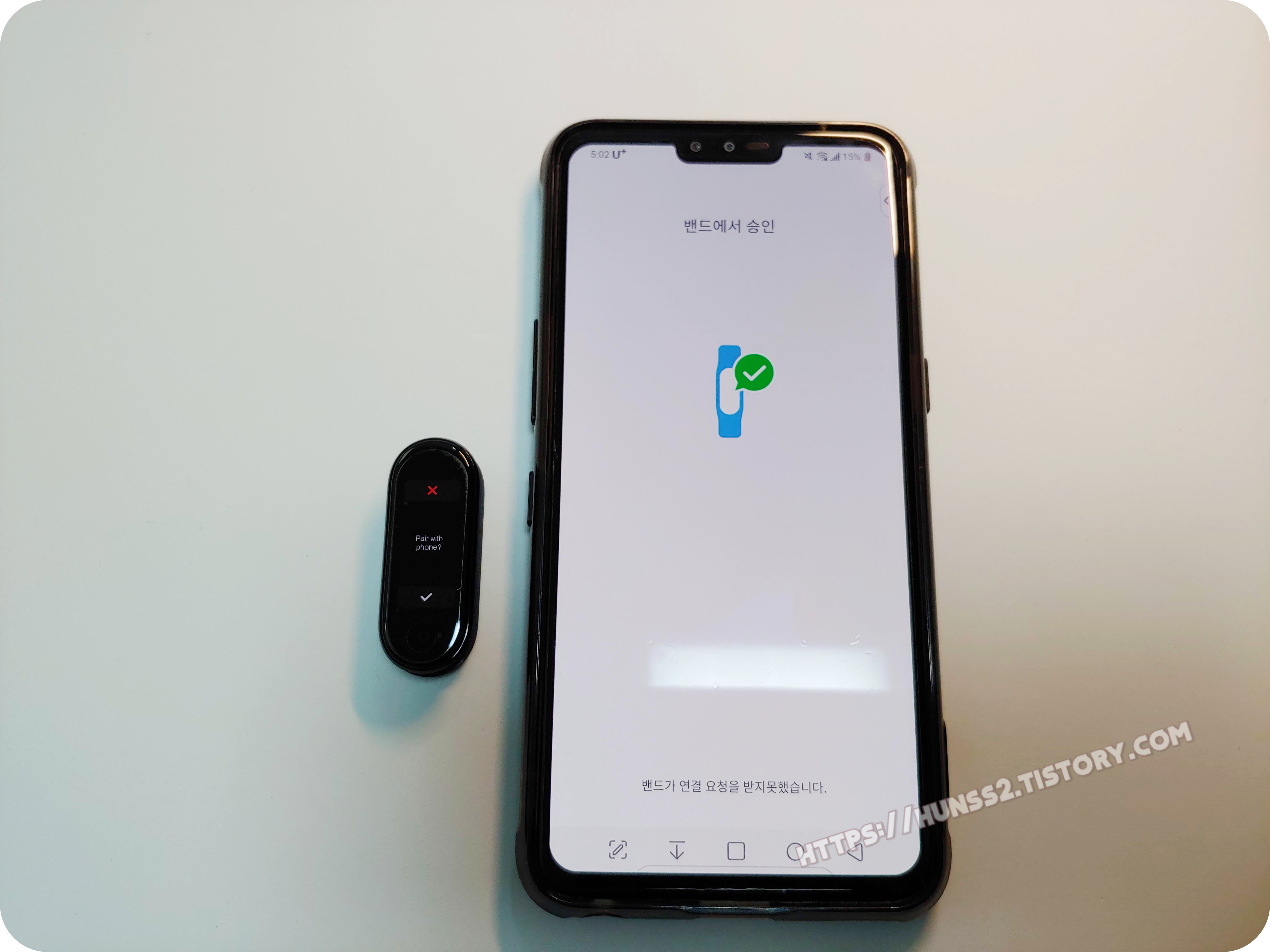 처음 미밴드5를 실행하면 영문으로 나오는 페어링 문구에 당황하실 수 있습니다. 그러나 당황하지 마시고 'Mi fit' 앱으로 미밴드5를 연결해주세요.
