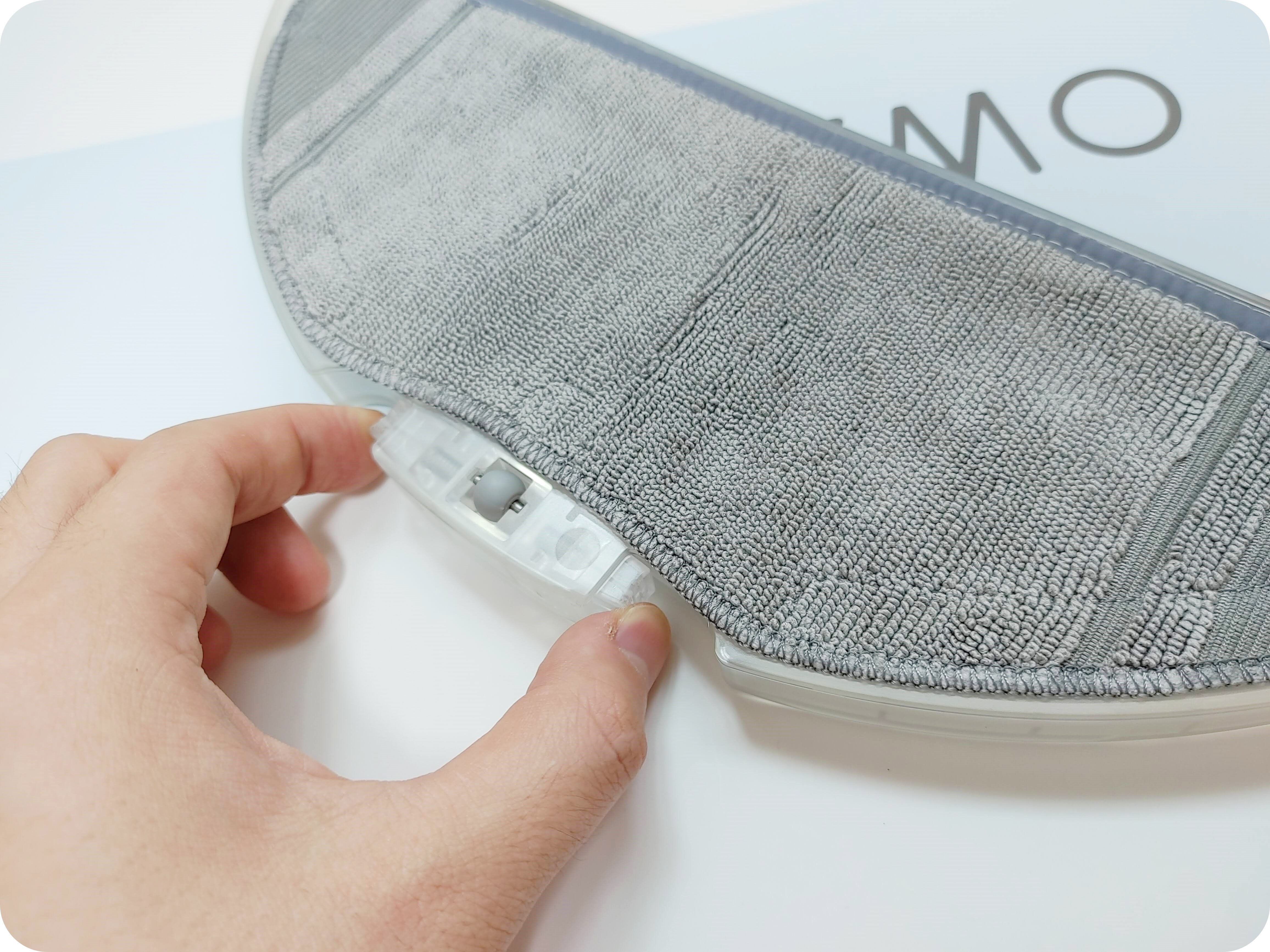 걸레를 청소기에 결착 및 분리 역시 두 개의 손가락만 있으면 아주 쉽게 할 수 있어요. 로이모는 걸레에도 바퀴가 달려있더라고요. 아마 걸레질할 때 마찰력으로 인한 고장이 덜 나도록 해놓은 것 같아요.