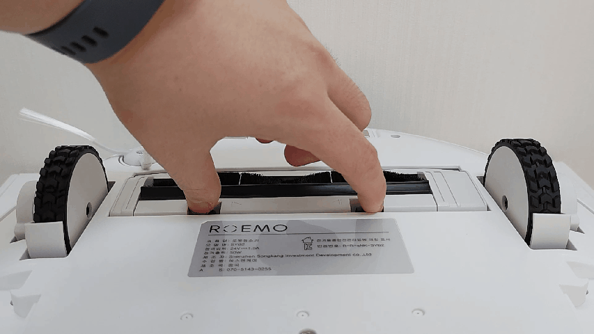 메인브러시는 다른 제품들처럼 간편하게 분리가 가능한데요. 아래 이미지처럼 커버를 열고 빼면 됩니다. 브러시가 부드러우면서 빽빽해서 먼지를 잘 쓸어 담을 거 같아요.
