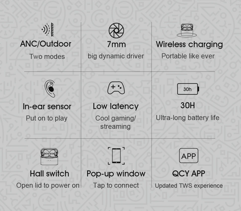 US $73.9 |QCY HT01 Hybrid ANC active noise cancellation Earphones wireless charging headphones Bluetooth 5.0 TWS hall switch hea