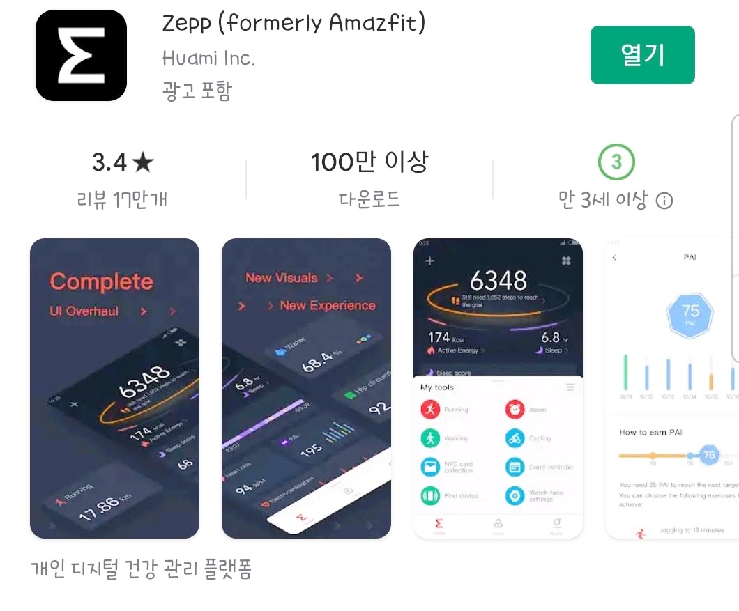 어메이즈핏 밴드5는 어메이즈핏에서 만든 제품인 만큼 샤오미 미핏이 아닌 ZEPP어플로 연동해야합니다. 마켓에서 간단히 다운받아 설치할 수 있으며 미핏 어플을 이미 사용 중이라면 같은 계정으로 로그인을 하시면 됩니다. (미핏 어플과 같은 계정으로 로그인을 해야 샤오미 체중계 같은 샤오미 디바이스를 ZEPP어플로도 이용할 수 있어요.)