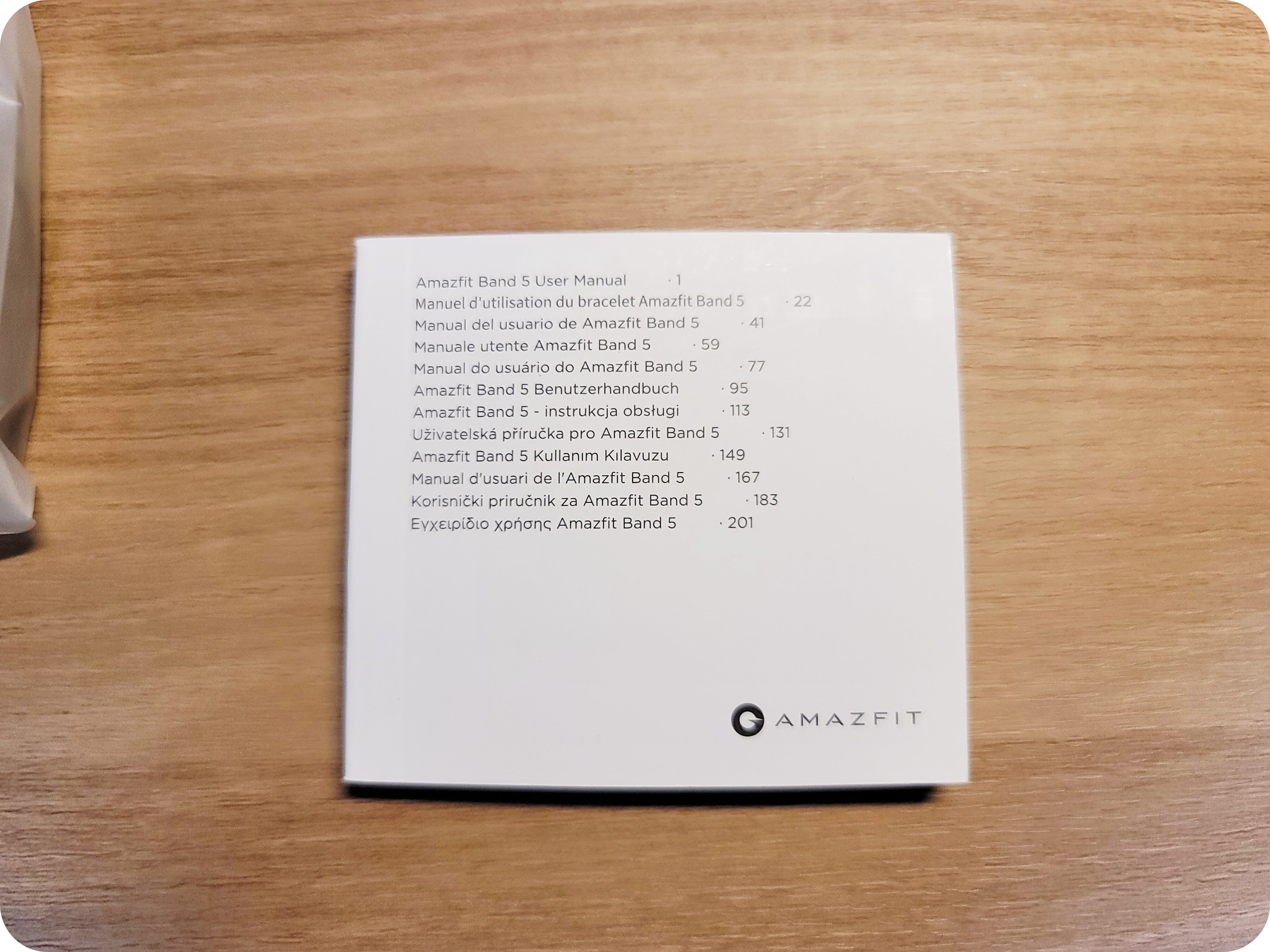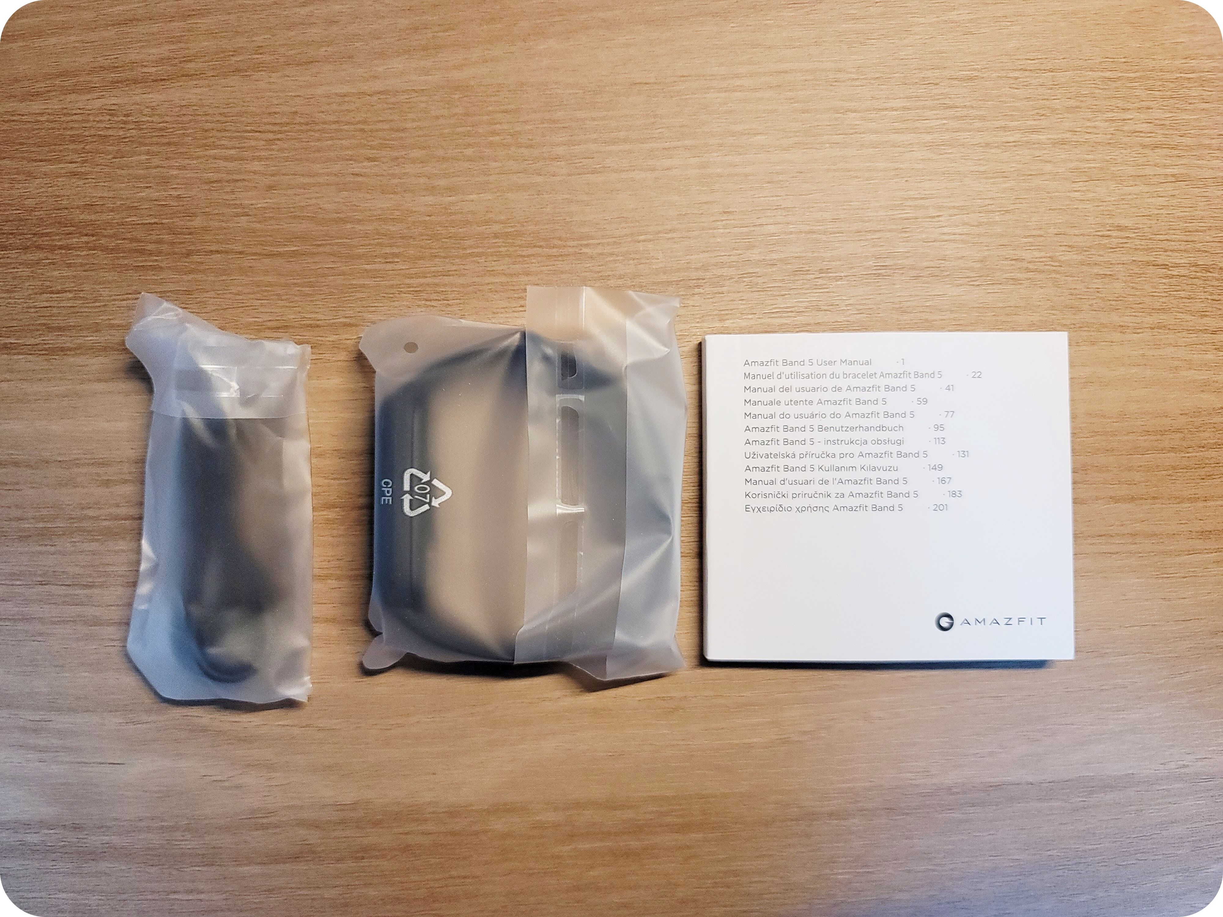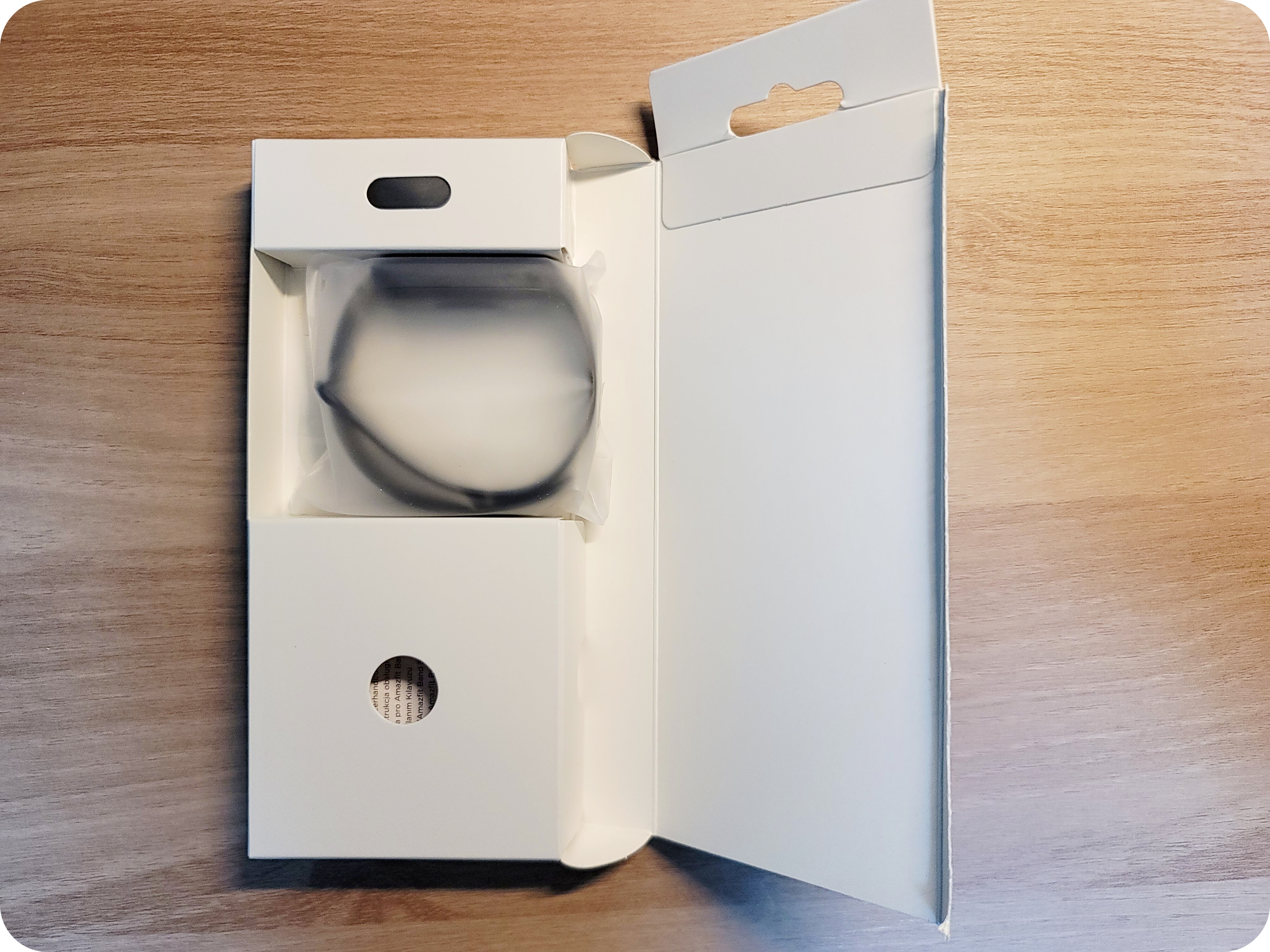 이렇게 개봉을 해서 상자를 열면 간단한 구성으로 포장이 되어있어요. 구성품은 어메이즈핏 밴드5(본품), 설명서, 충전기입니다.
