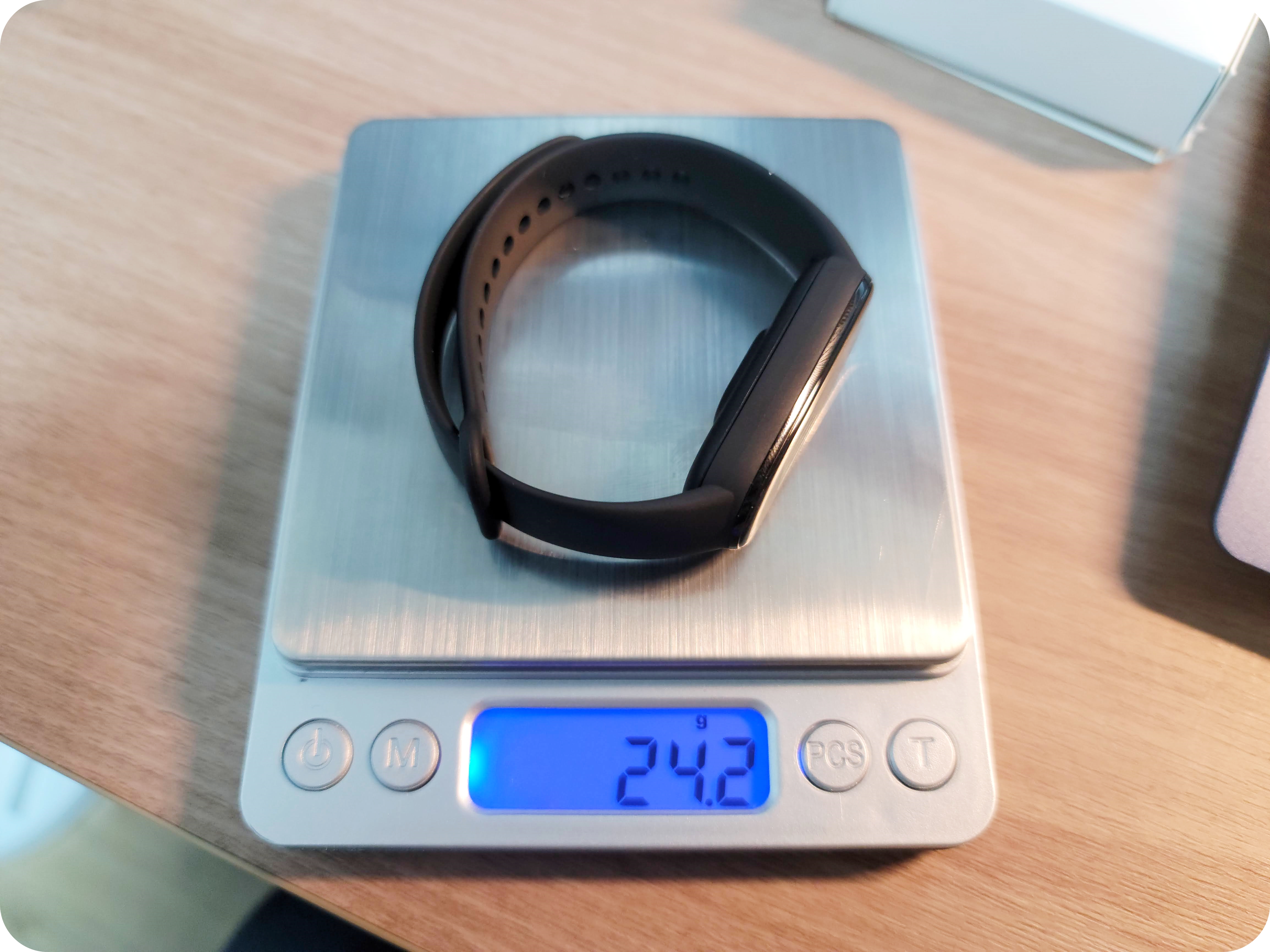 외형적 변화만 있는 것이 아니라 기능이 추가된 만큼 어메이즈핏 밴드5는 미밴드보다 1g정도 더 무거웠어요. 실제로 체감이 되는 무게는 아니기에 이 부분은 신경을 쓰지 않아도 될 것 같아요.