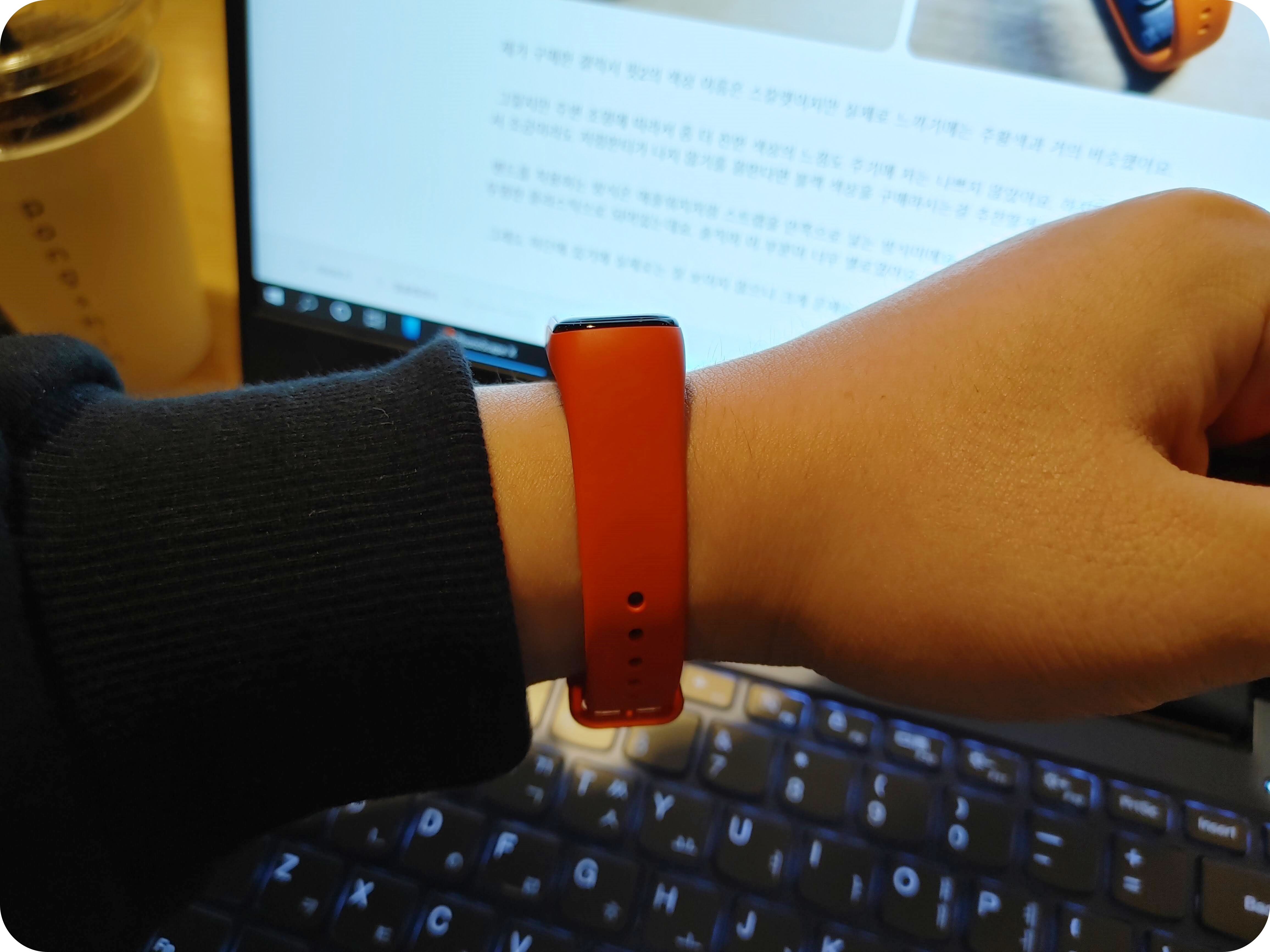 제가 구매한 갤럭시 핏2의 색상 이름은 스칼렛이지만 실제로 느끼기에는 주황색과 거의 비슷했어요.