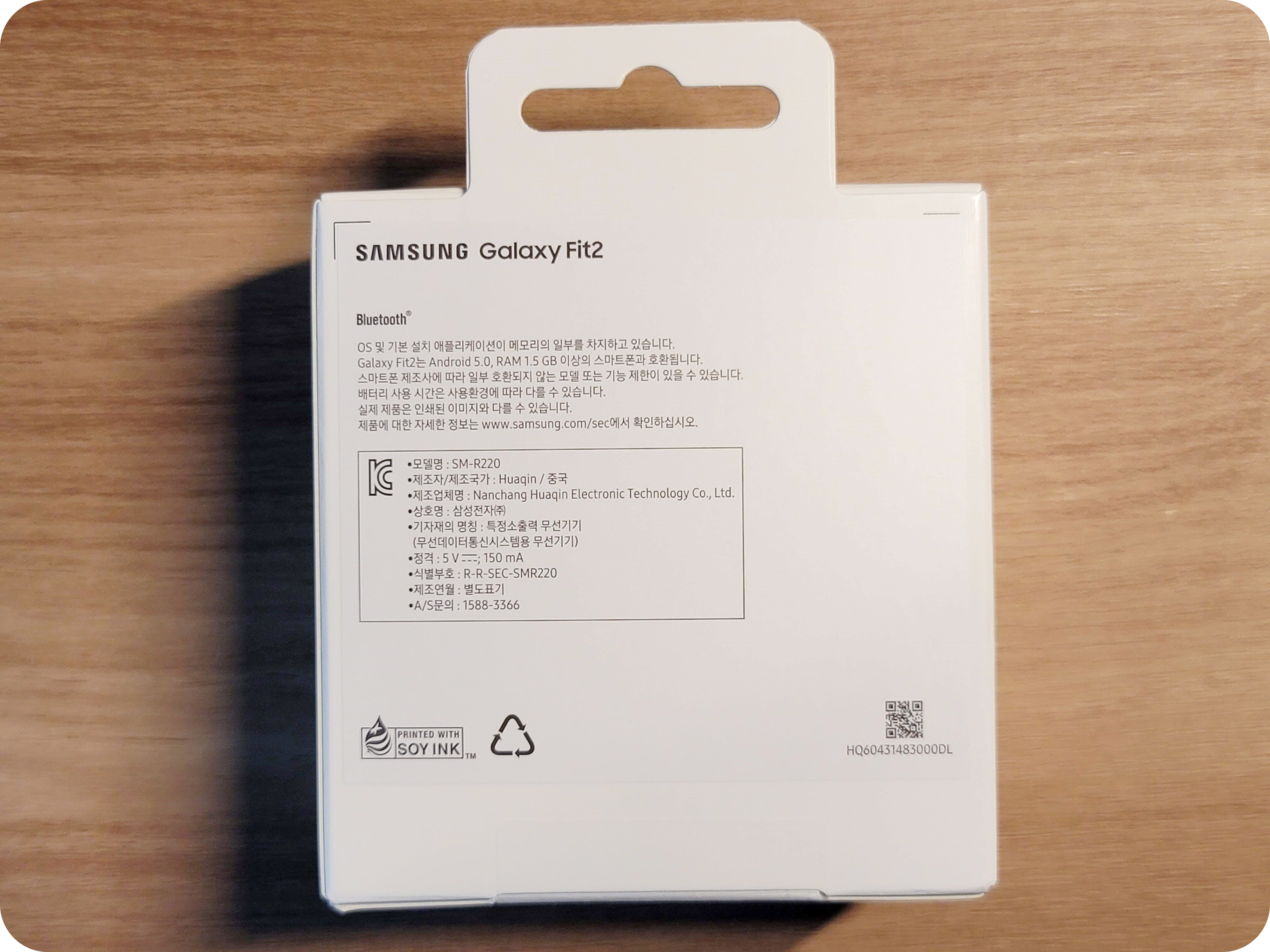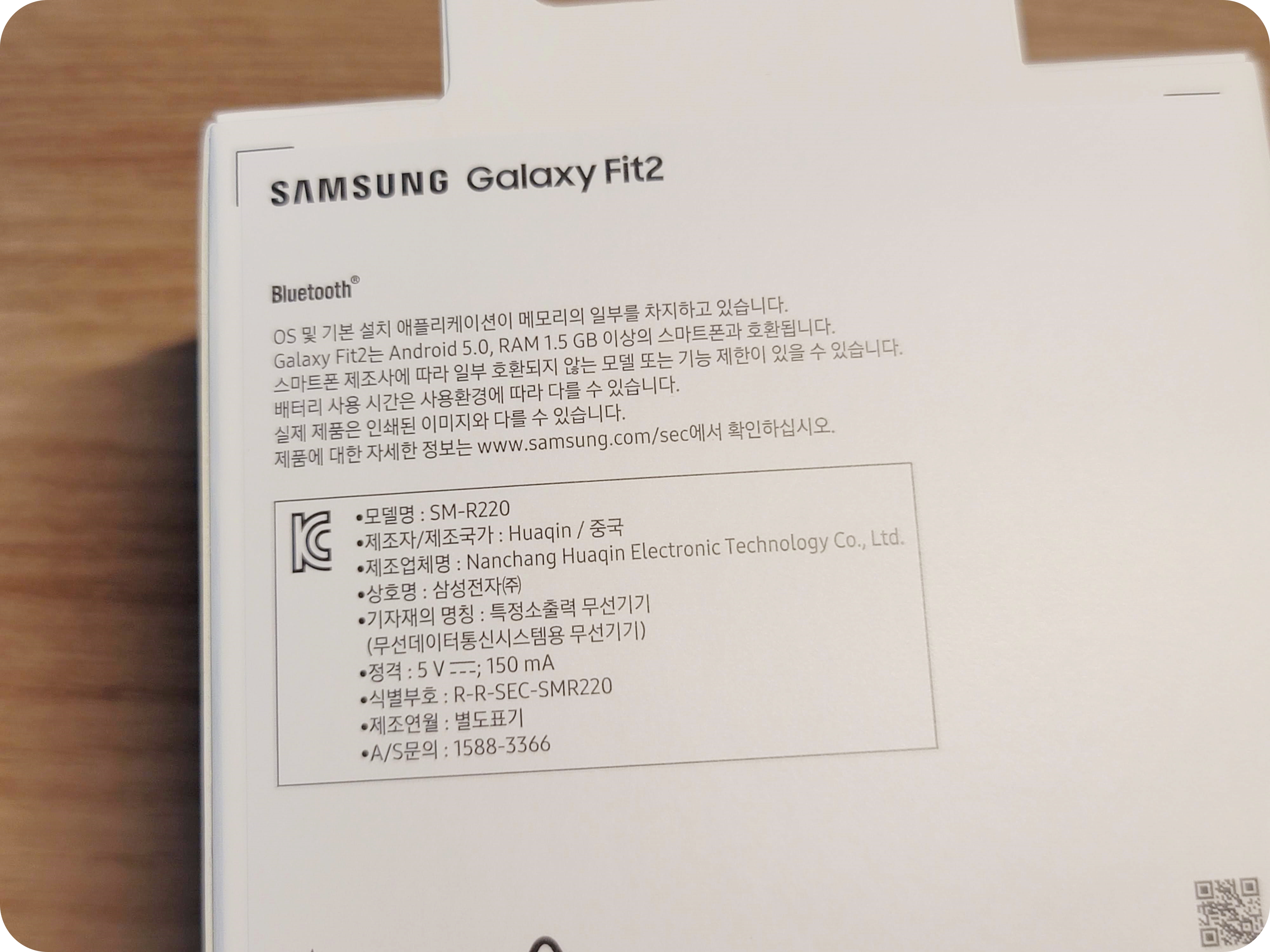 위에서도 말했지만 핏2는 ODM 제품으로 다른 업체에서 만들어진 제품입니다. 때문에 제조자를 보면 Huaqin으로 적혀있는 것을 볼 수 있는데요. 그렇다고 삼성에서 관여를 하나도 하지 않는 것은 아니기에 걱정 없이 제품을 열어보겠습니다.