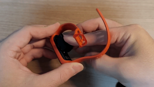 밴드를 착용하는 방식은 애플 워치처럼 스트랩을 안쪽으로 넣는 방식이에요. 다만 스트랩을 고정해주는 고리 부분이 반투명한 플라스틱으로 되어있는데요. 솔직히 이 부분이 너무 별로였어요. 저렴한 티가 너무 났습니다.