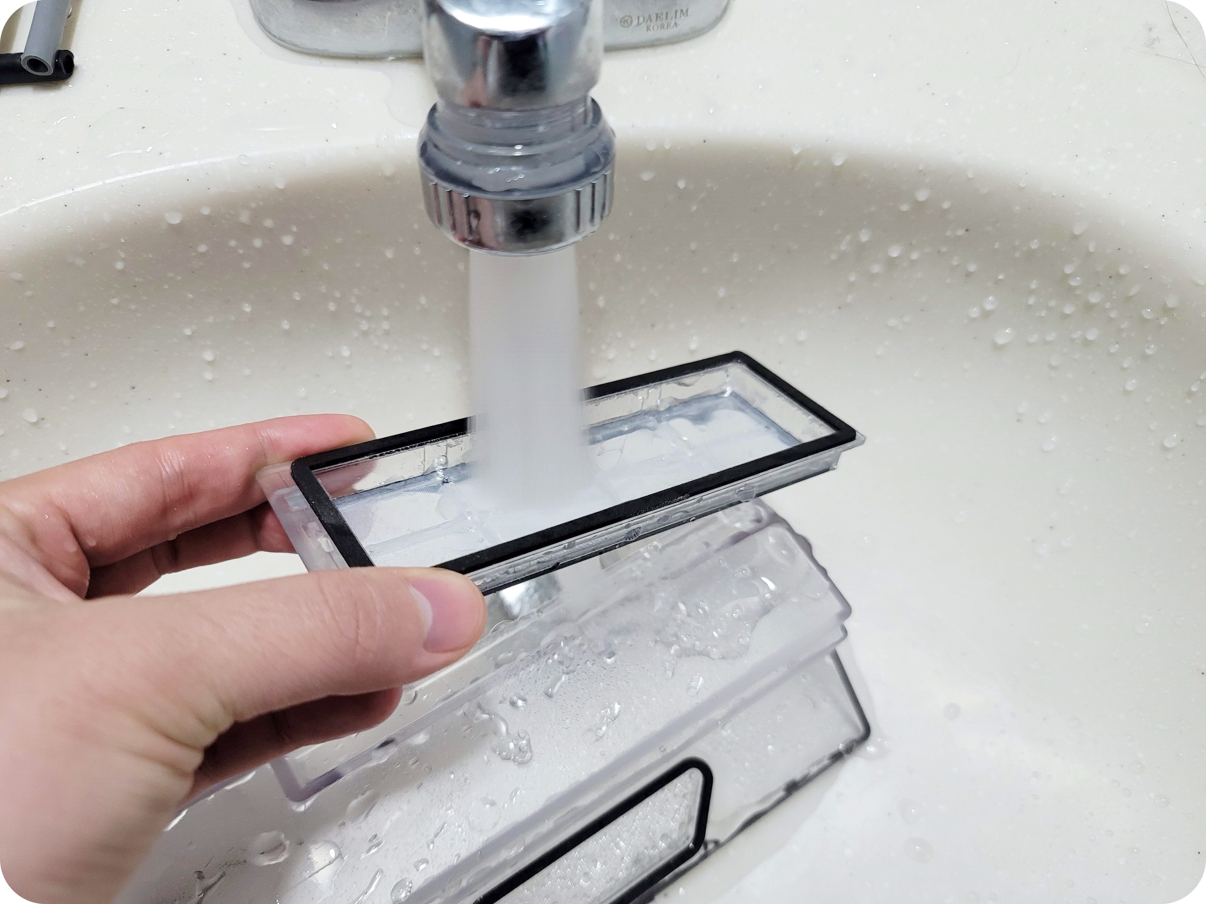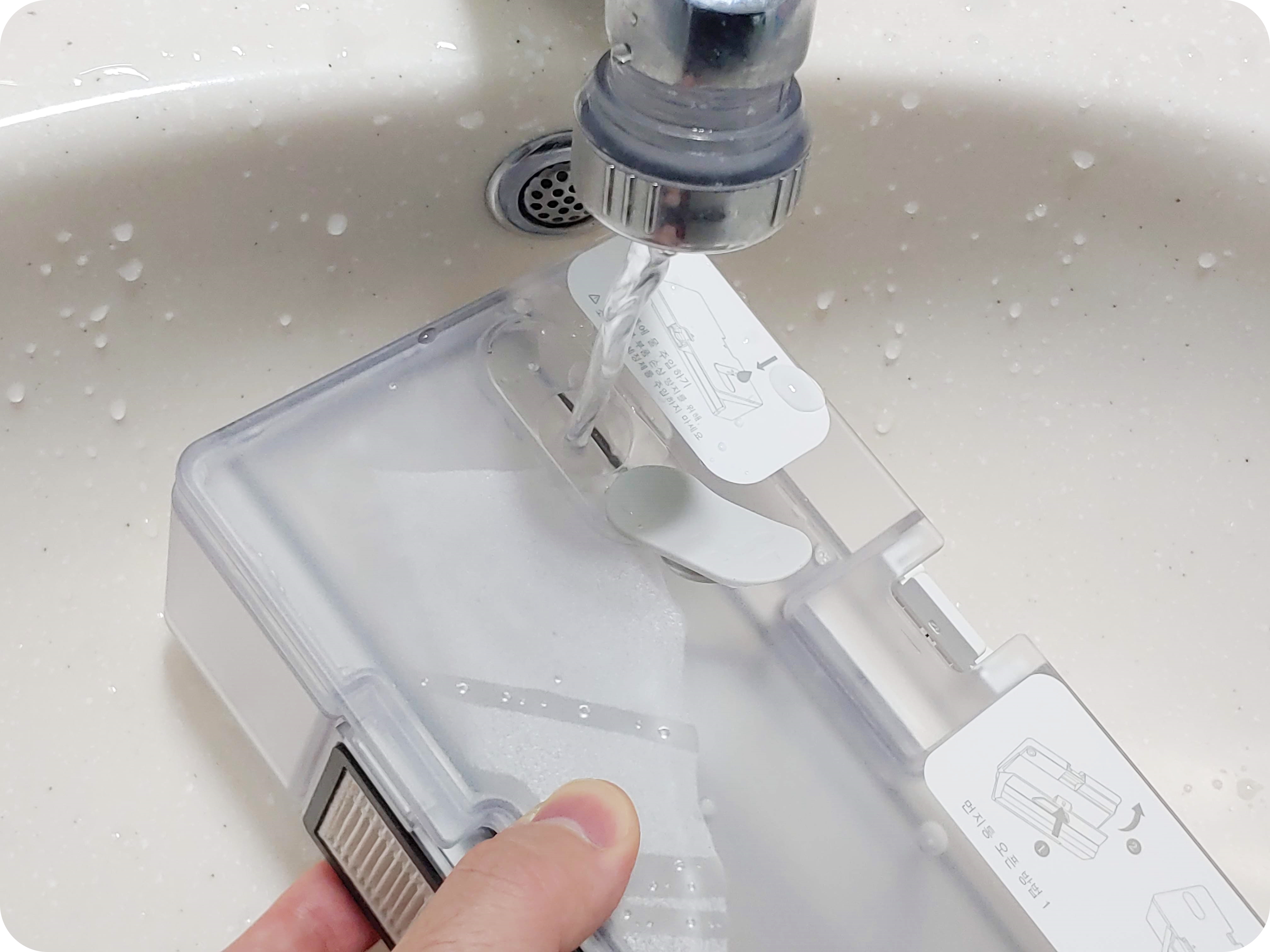 먼지를 비워주고는 1차, 2차, 먼지통 모두 물로 씻어내면 깨끗하게 사용할 수 있으니 평소에 잘 씻어서 사용해주시면 오래 사용할 수 있어요. (3차 HEPA필터는 워셔블이라도 물로 세척 시 성능이 떨어지기에 물세척은 비추천드려요.)