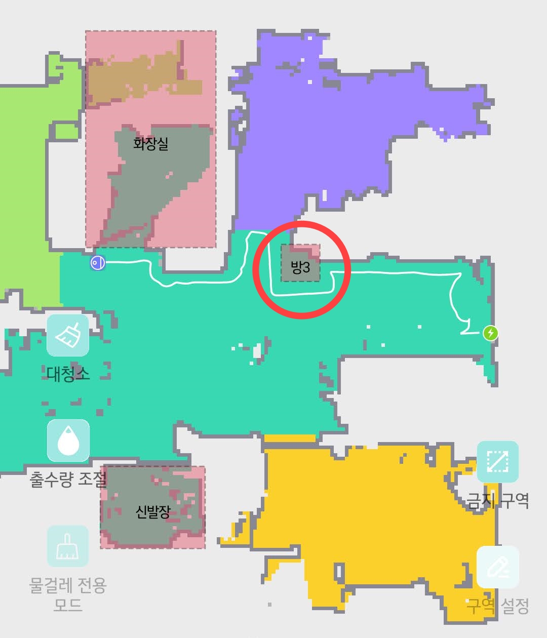 만약 집에 신발장이나 화장실 같은 공간에 턱이 있다면 8cm인지 확인을 해보시고 8cm보다 낮다면 아래처럼 어플로 금지구역을 설정하는 것을 추천드립니다.