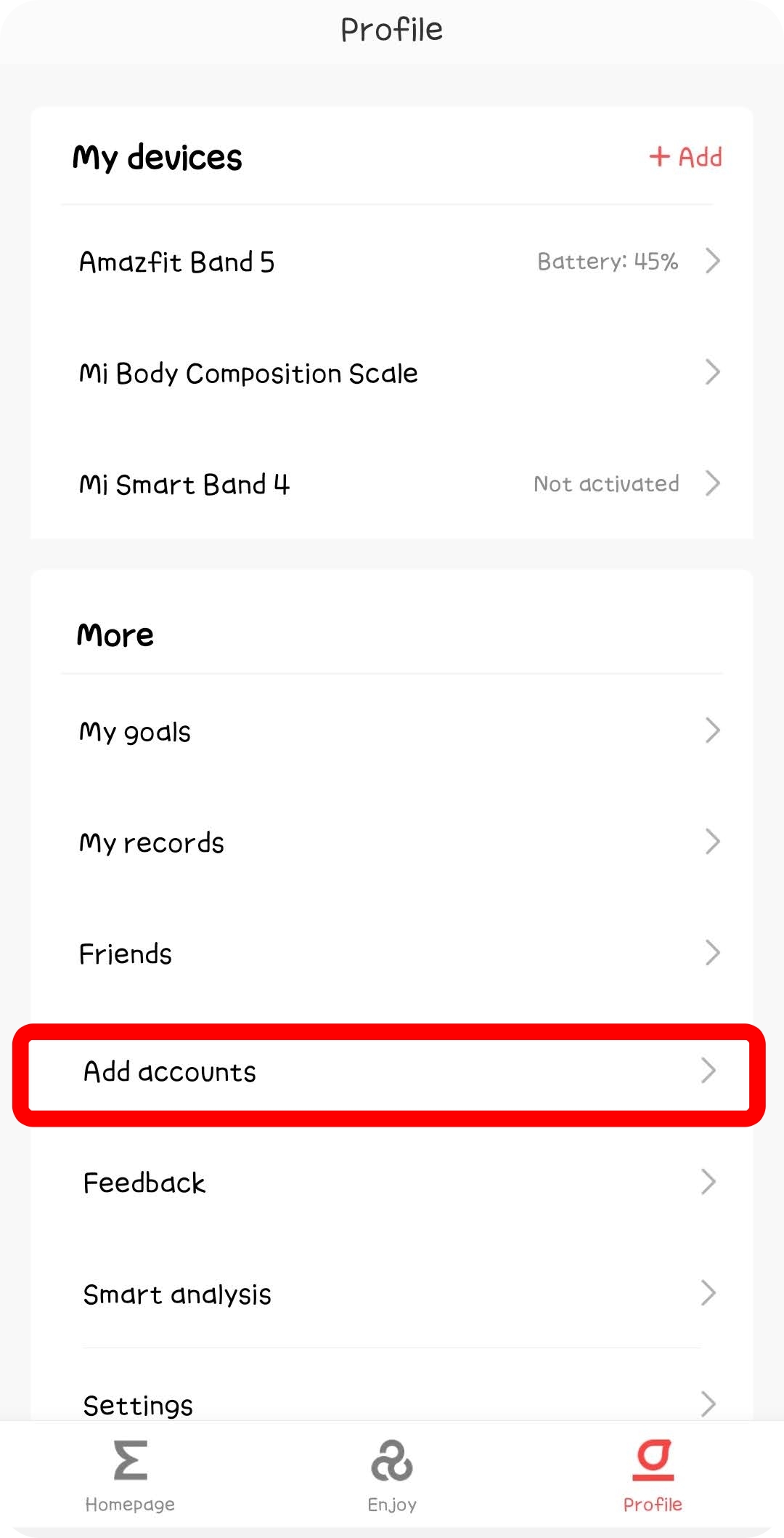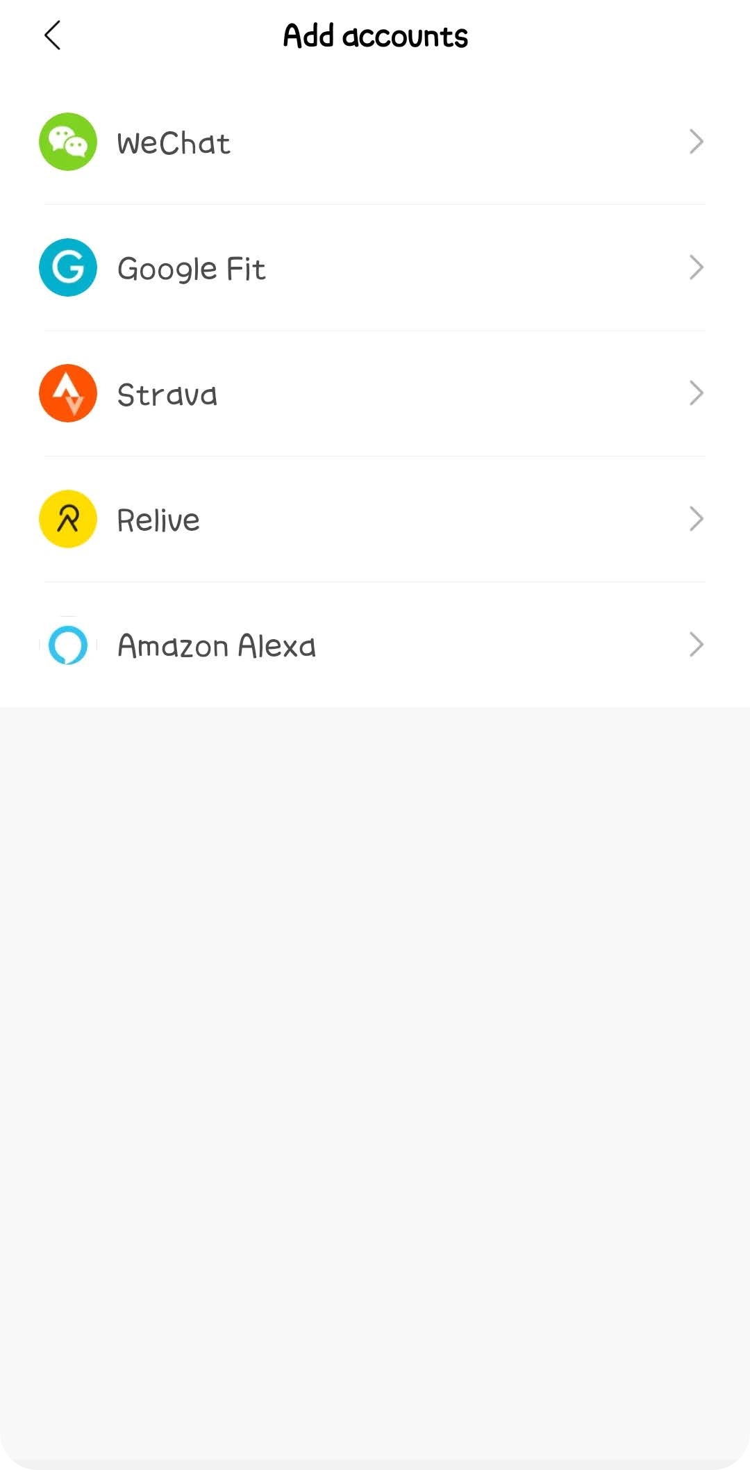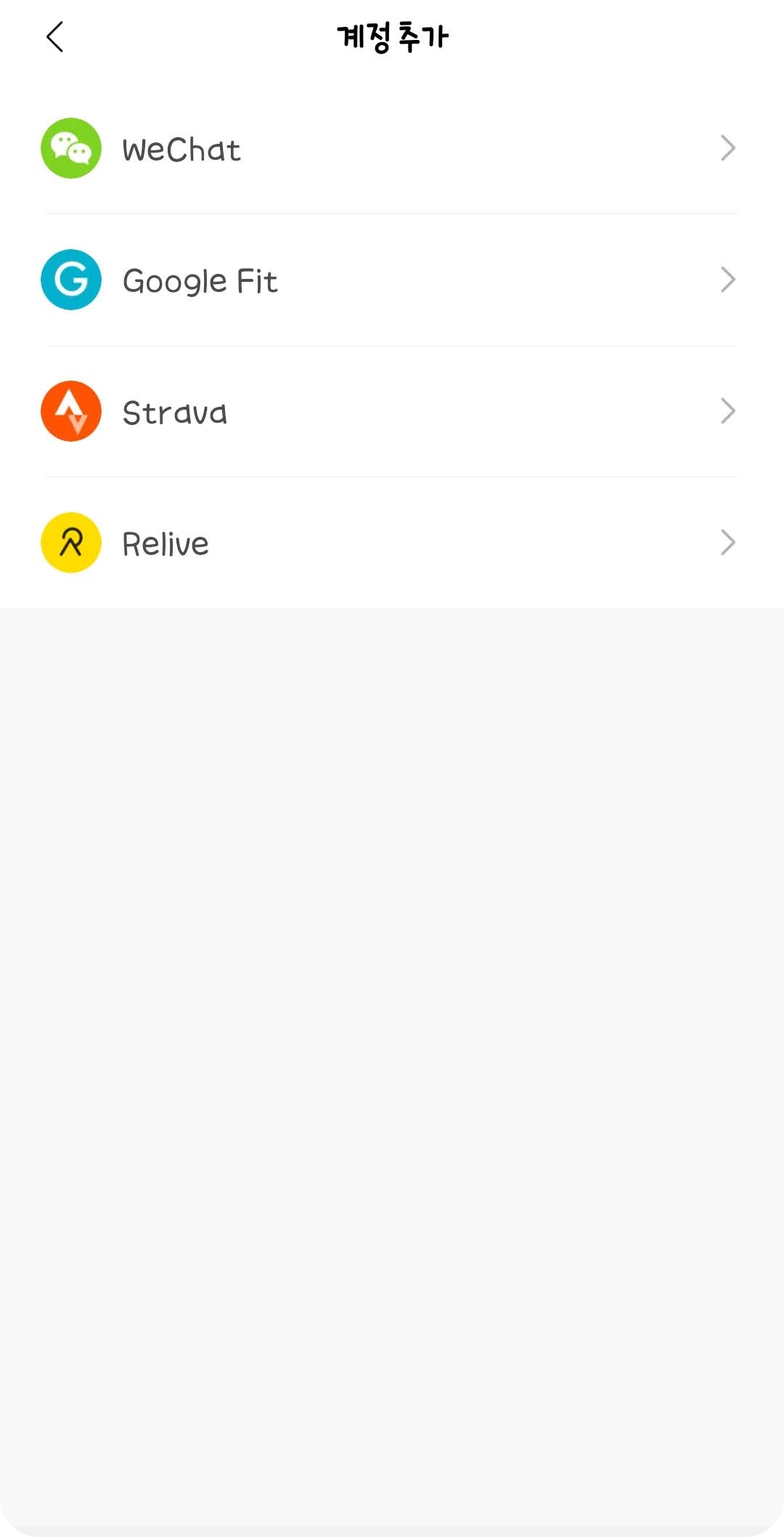 ZEPP 어플의 '프로필'탭으로 들어가 계정 추가를 클릭하면 위와 같은 화면이 나옵니다. 이때 시스템 언어에 따라서 알렉사 메뉴가 있고 없고의 차이가 있기에 우선 시스템 언어를 영어로 해줘야 합니다.