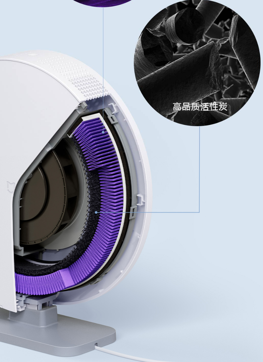 샤오미 탁상용 공기청정기는 0.3㎛의 먼지 입자를 99.6% 정화를 해주는 필터를 가지고 있습니다. 공식적으로 필터 등급을 나타내지는 않았으나 정화율을 보면 아마도 E12(세미헤파) 등급의 필터가 사용된 것으로 보입니다.