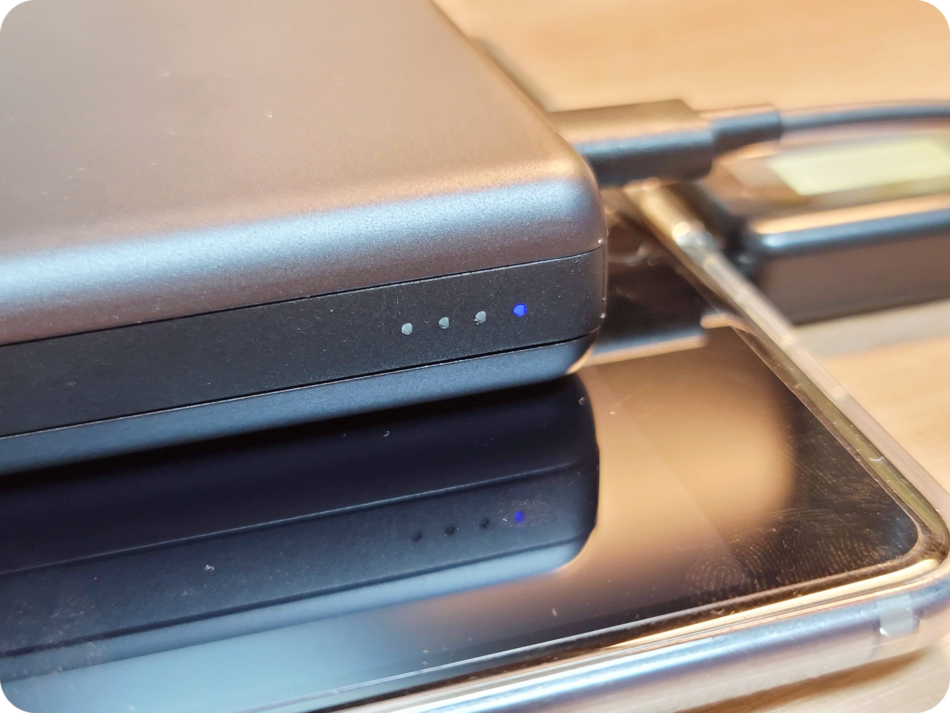 고속 충전을 할 때에는 LED 인디케이터에 파란 불빛이 나와서 확인하기 편합니다. 충전이 잘 되고 있는지 알기 쉬웠어요.