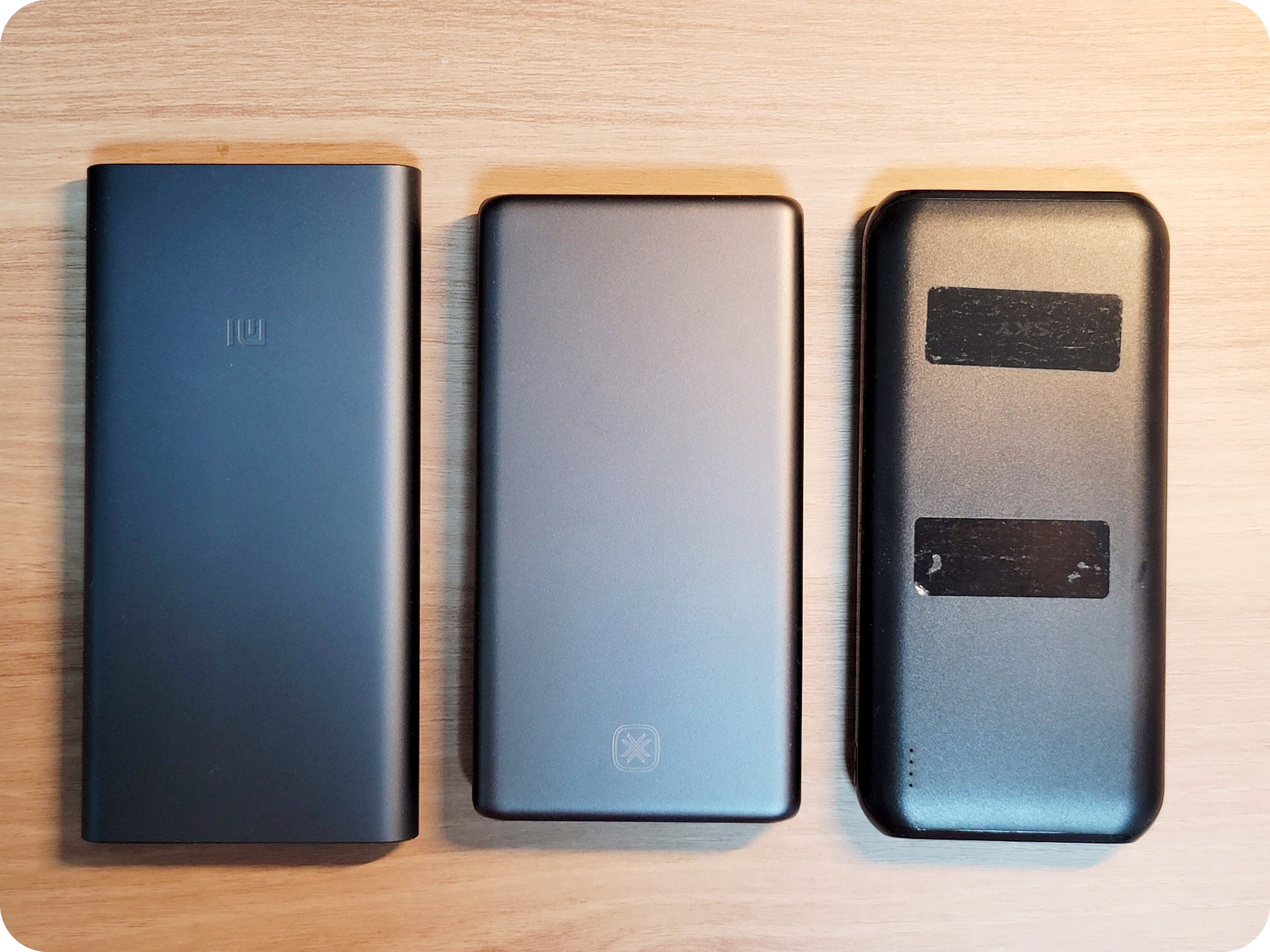 먼저 1만 용량의 비슷한 포트 구성의 제품과 사이즈 비교를 해보았어요. 중간이 빅쏘 제품인데요. 1만제품과 비교해서 오히려 작아 보이기도 하고 비슷한 크기를 보여줍니다.