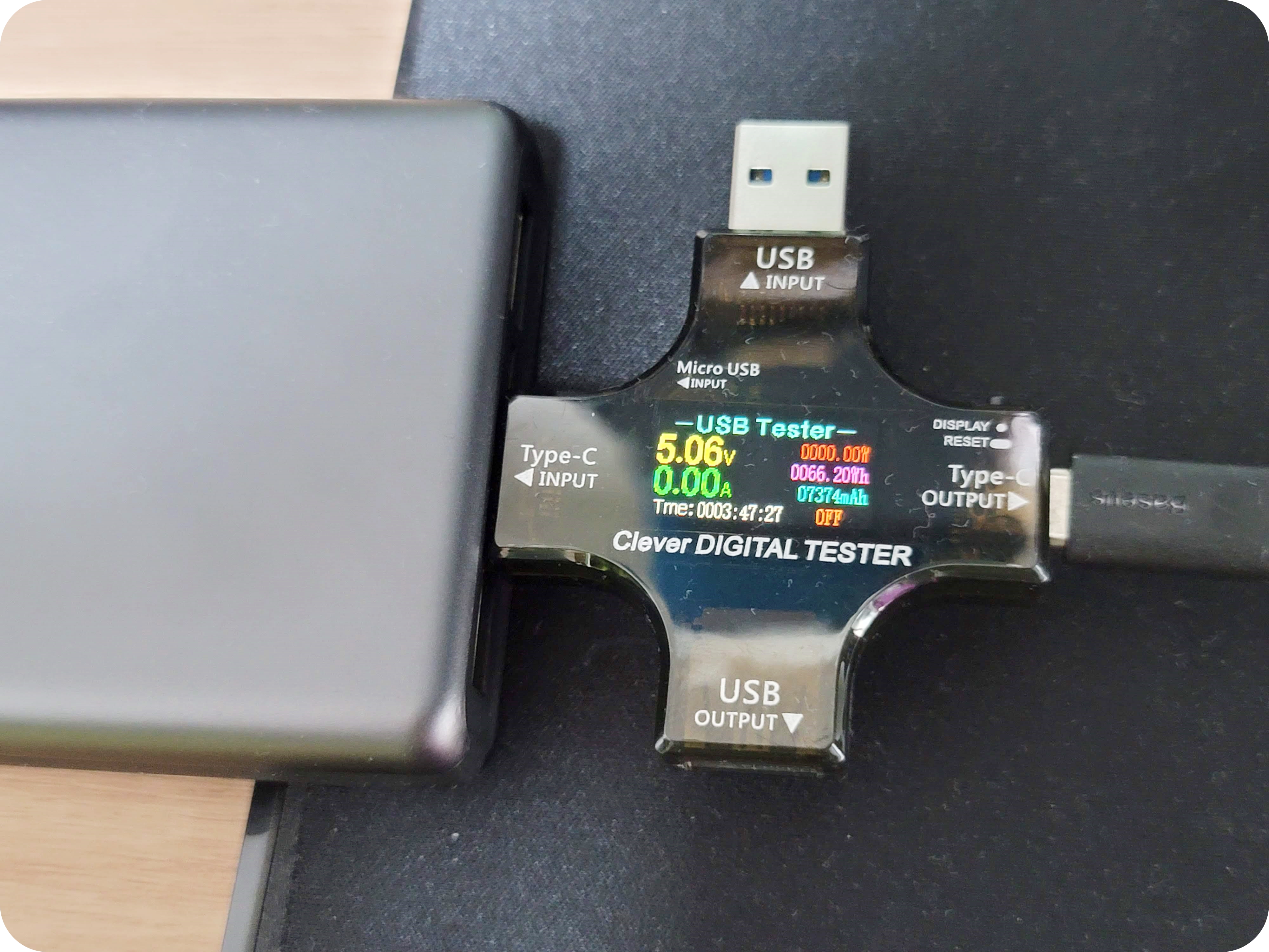 보조배터리를 0%까지 만든 다음 충전을 해보았는데 무려 3시간 47분 만에 완충이 된 것을 볼 수 있었습니다. 총 소비된 전력은 66.2Wh로 15000mAh인 보조배터리가 55.5Wh인 것을 생각하면 이 제품의 배터리 용량이 15000mAh인 것이 증명이 되었습니다. (11Wh정도는 충전 시 버려지는 전력이라고 보면 됩니다.)