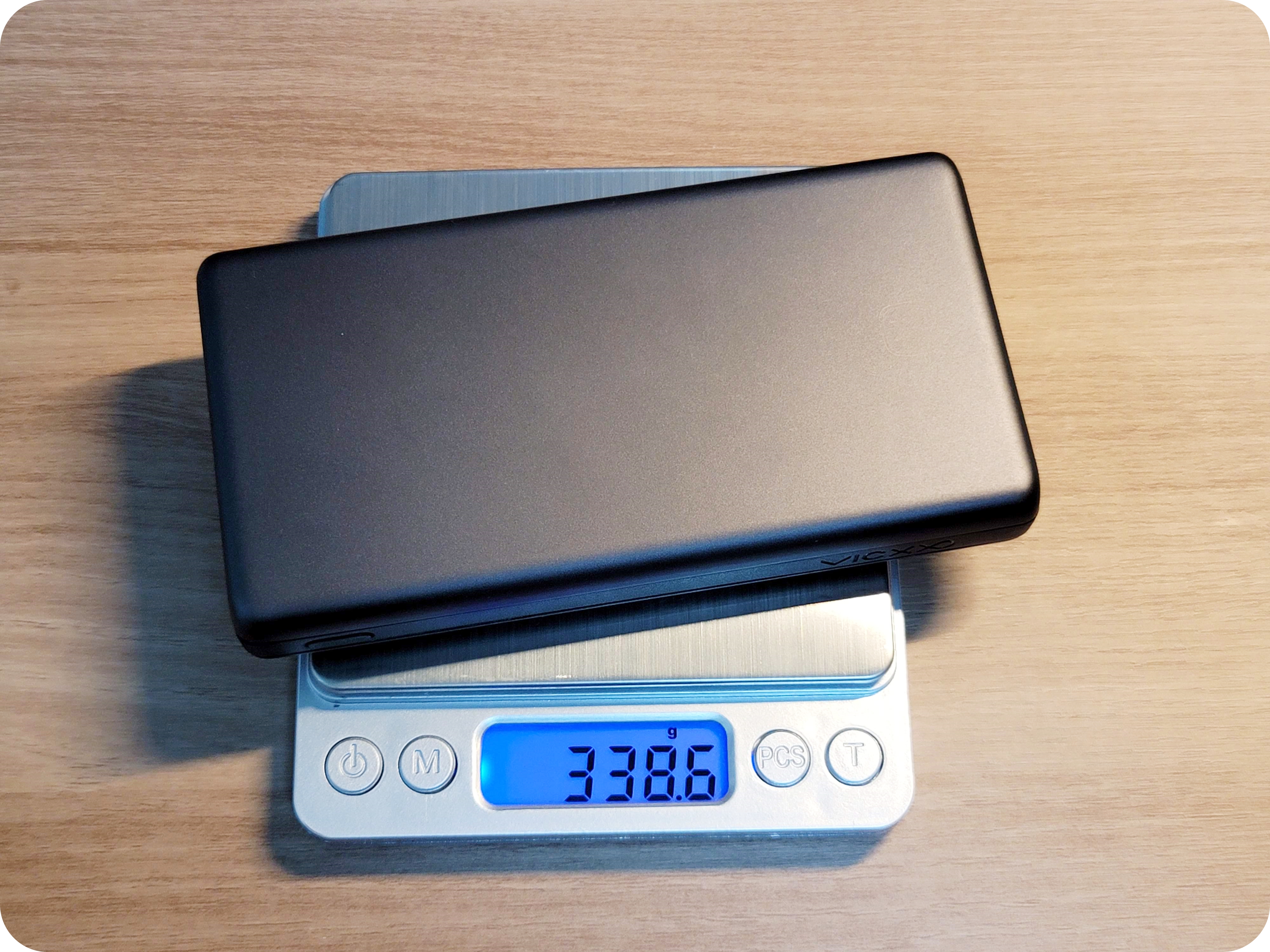 무게도 역시 중간 정도 포지션을 보여줬어요. 더 가벼운 1만용량의 보조배터리가 있지만 알루미늄으로 마감된 제품과 비교하면 그렇게 크게 차이가 나지도 않았습니다. 오히려 2만제품보다 훨씬 가벼운 무게를 보여줬어요.