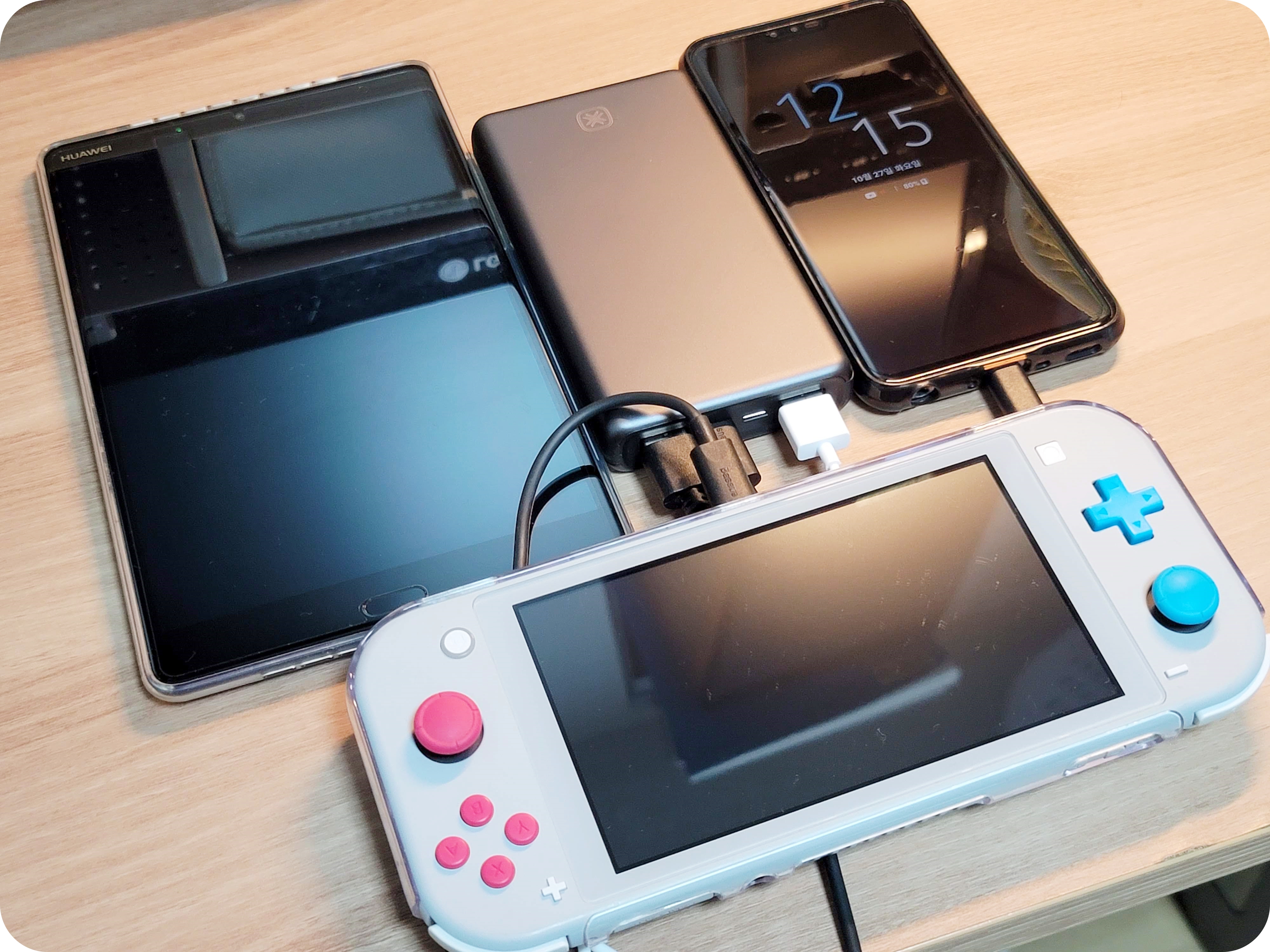 PD충전을 지원하기 때문에 닌텐도 스위치도 충전할 수 있어 좋습니다. 게다가 총 3개의 기기를 동시에 충전할 수 있으니 15000mAh 용량을 제대로 활용할 수 있어요.
