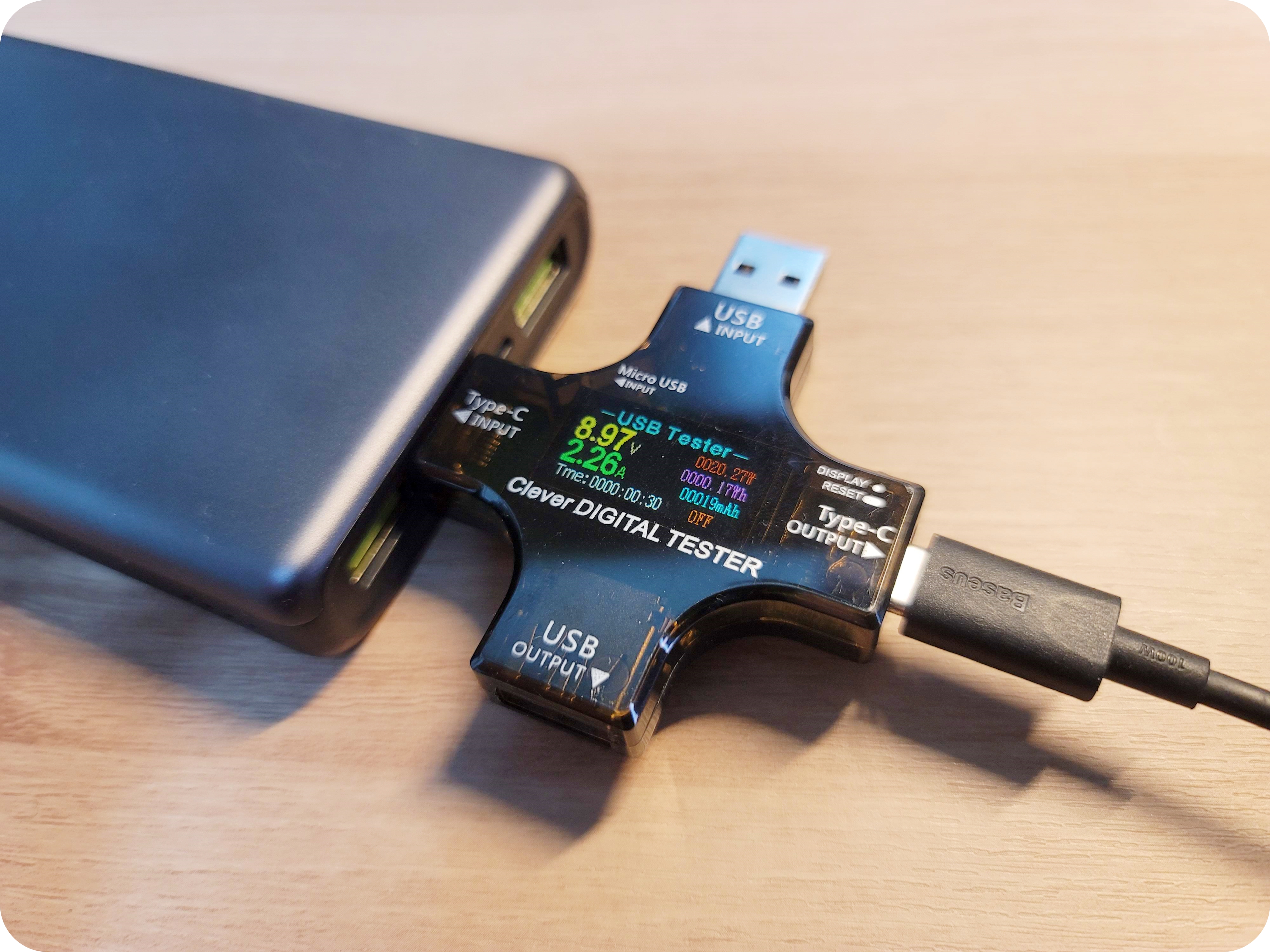 보조배터리는 최대 18W의 입력을 지원합니다. 실제로 65W의 충전기를 이용하여 충전을 해보니 18~20W가 나오는 것을 확인할 수 있었어요.