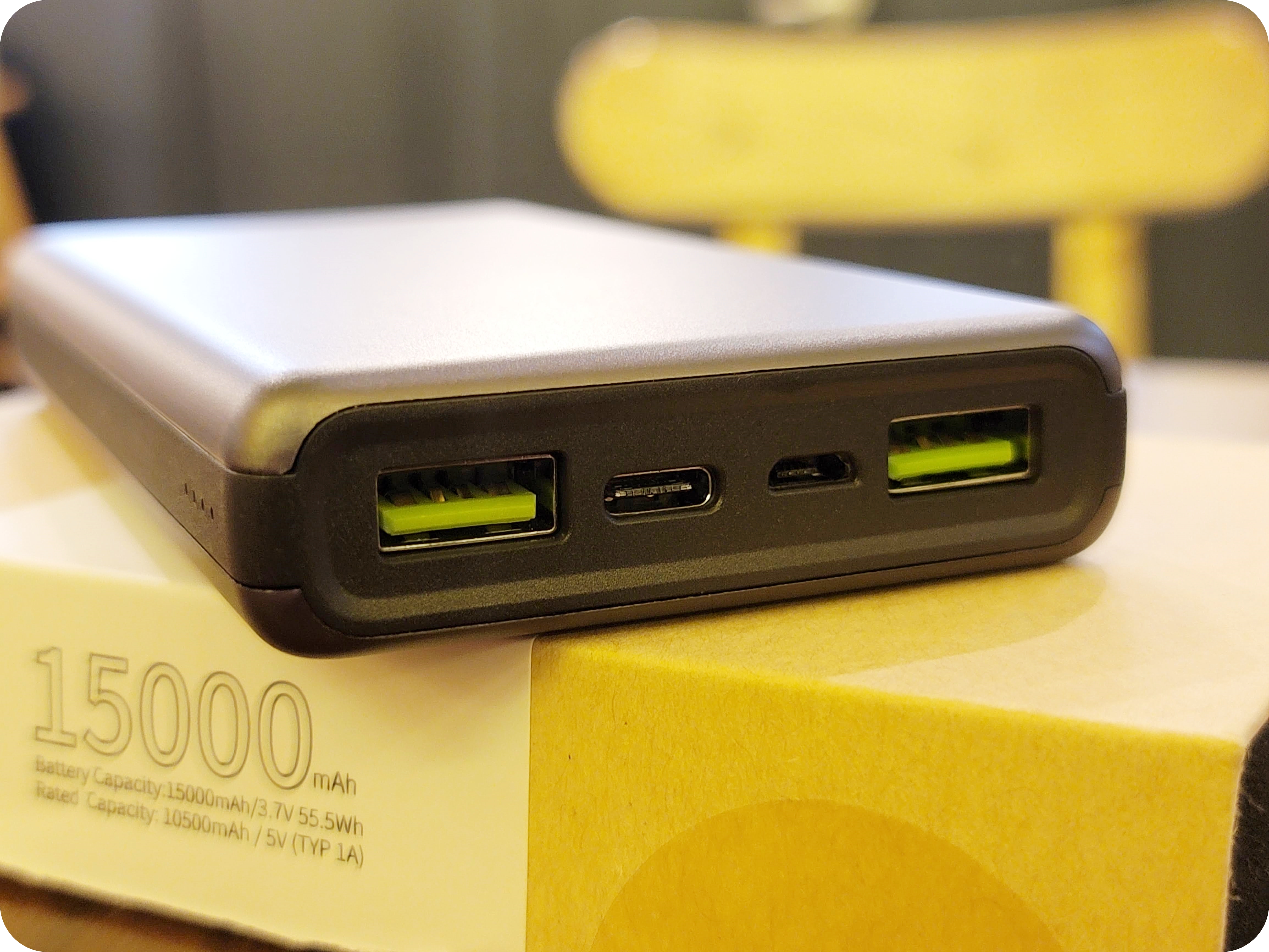 상자는 상당히 깔끔합니다. 종이상자에 옆면은 스티로폼으로 되어있어 충격에도 잘 보호해주는 것 같아요. 15000mAh의 용량이 정면에서 반겨주네요.